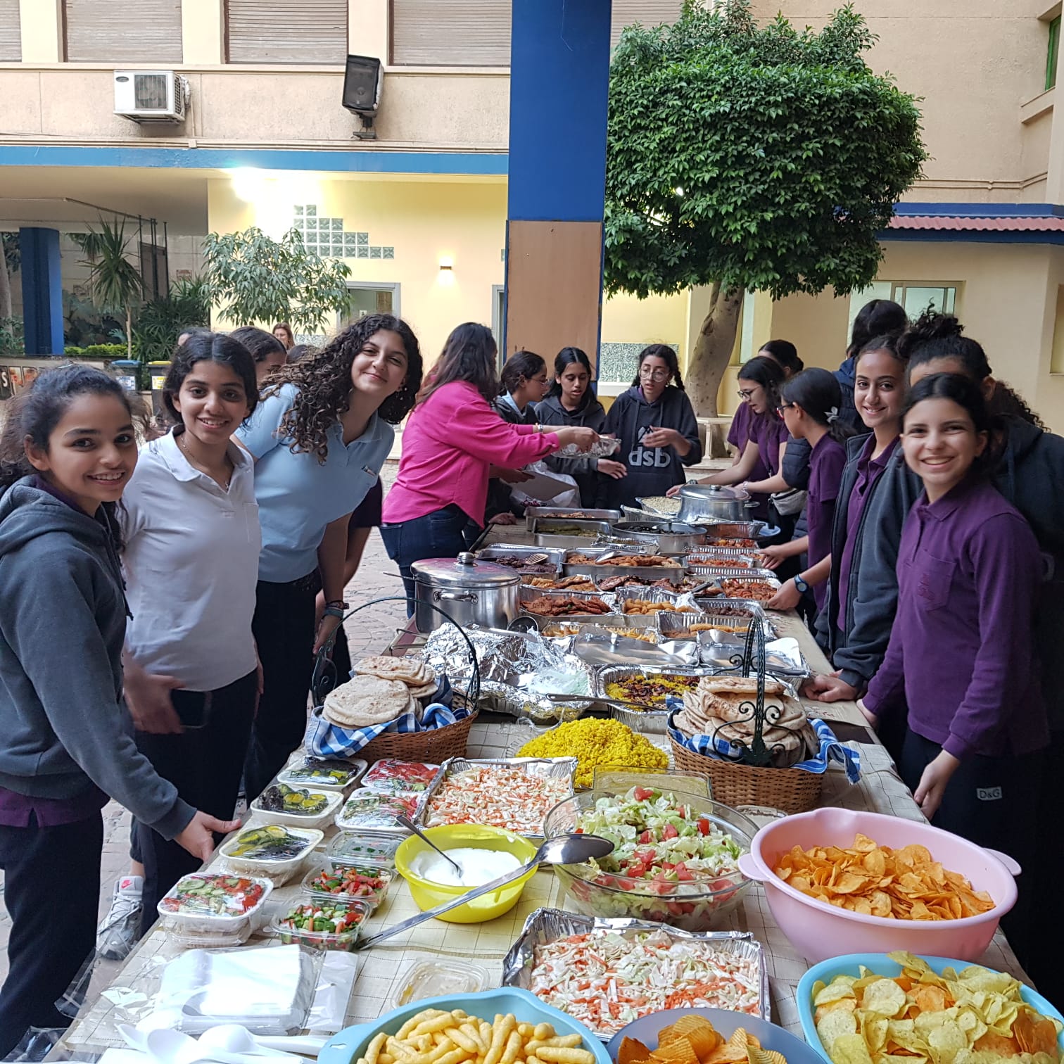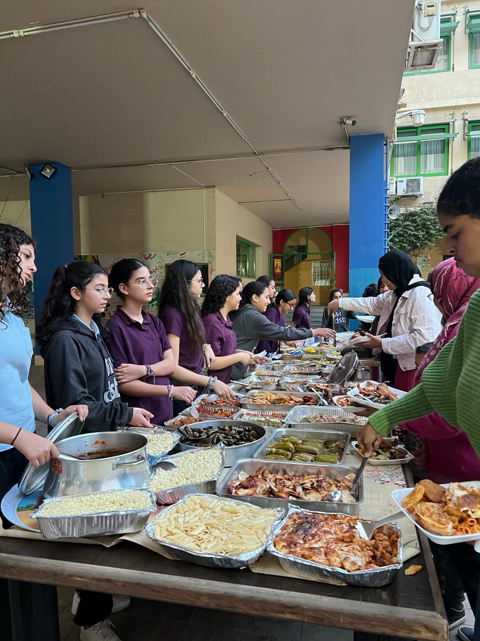 أعدت طالبات المدرسة مع أمهاتهن وجبات شهية وحرصن على وجود مجموعة متنوعة من الأطباق على مائدة الإفطار.