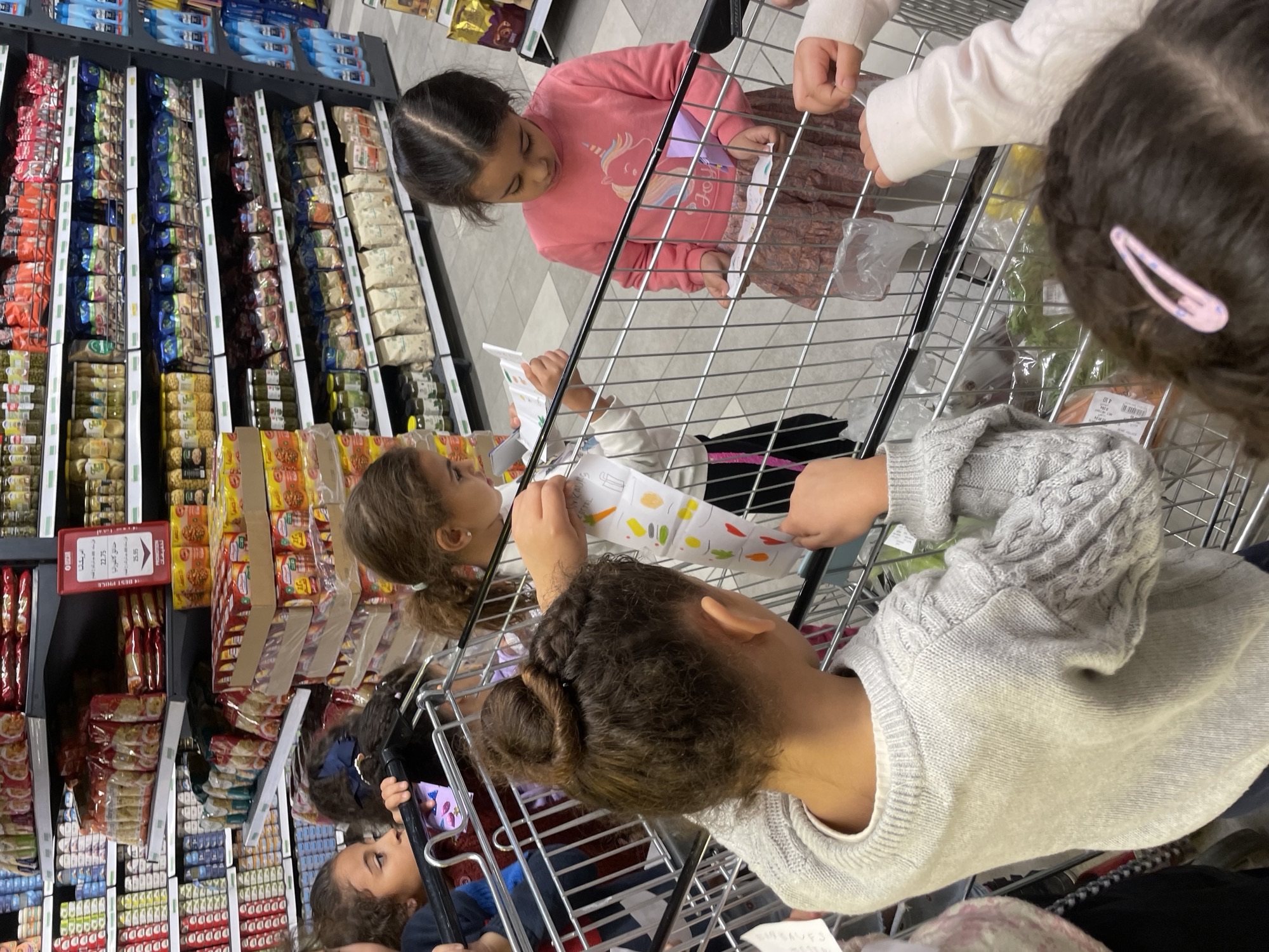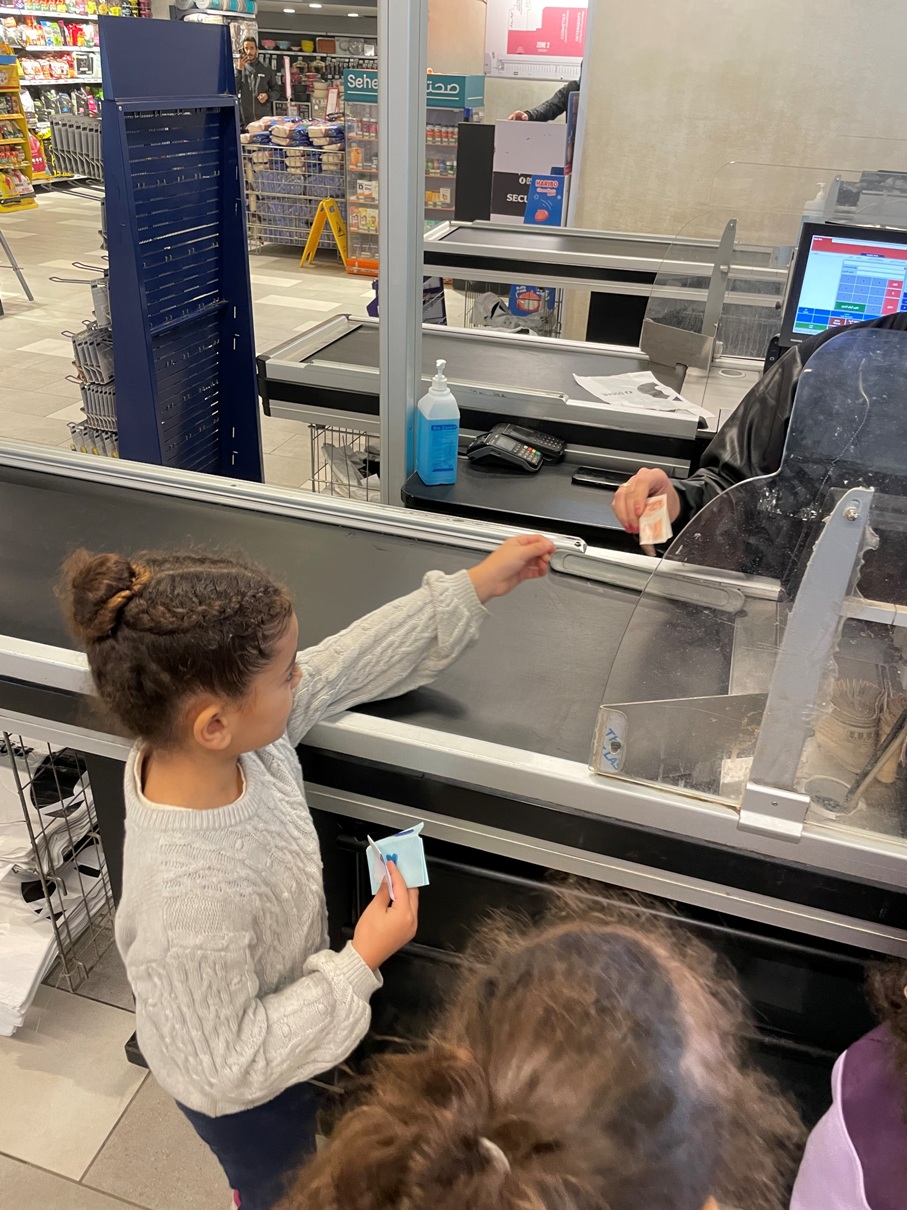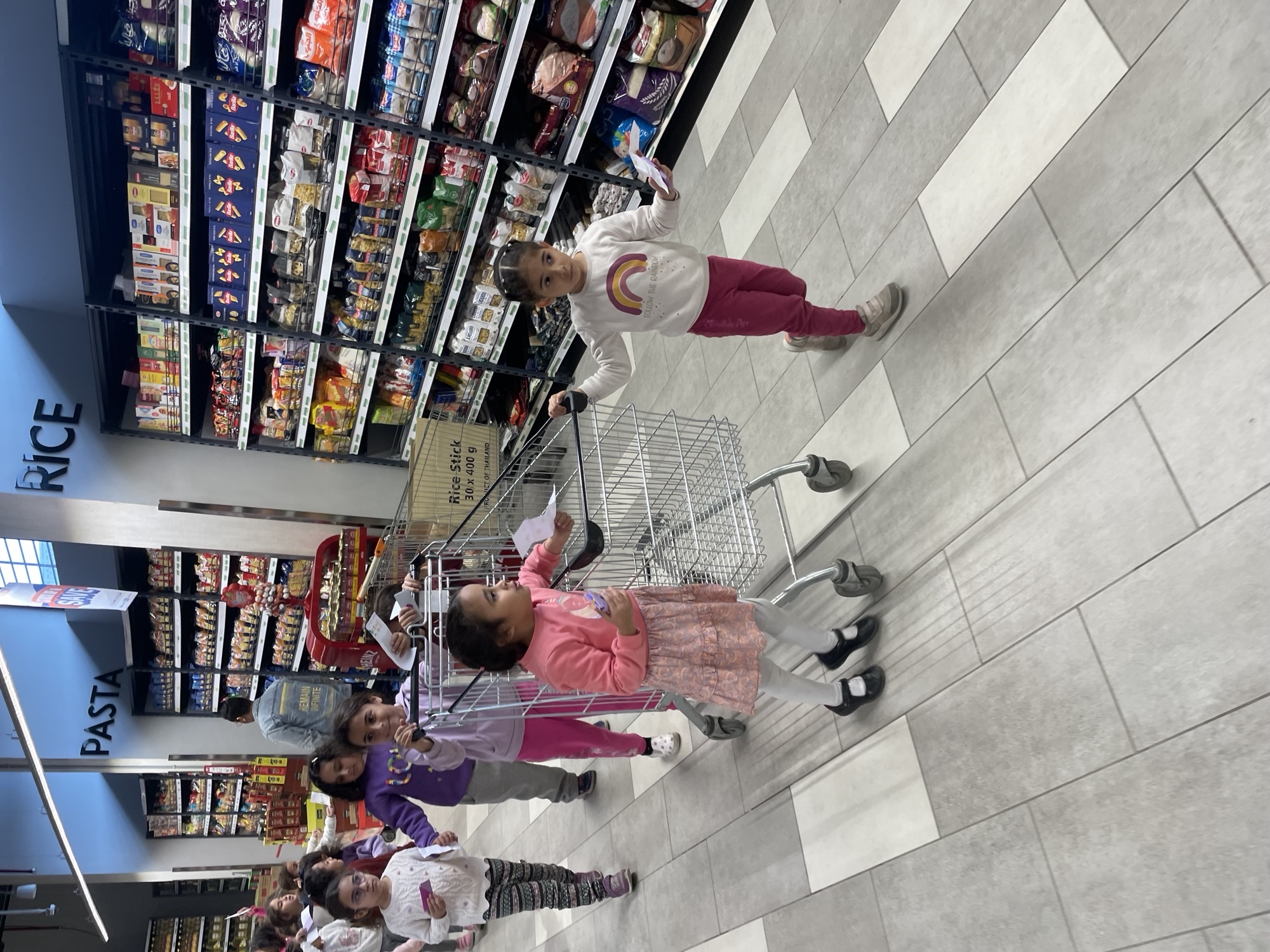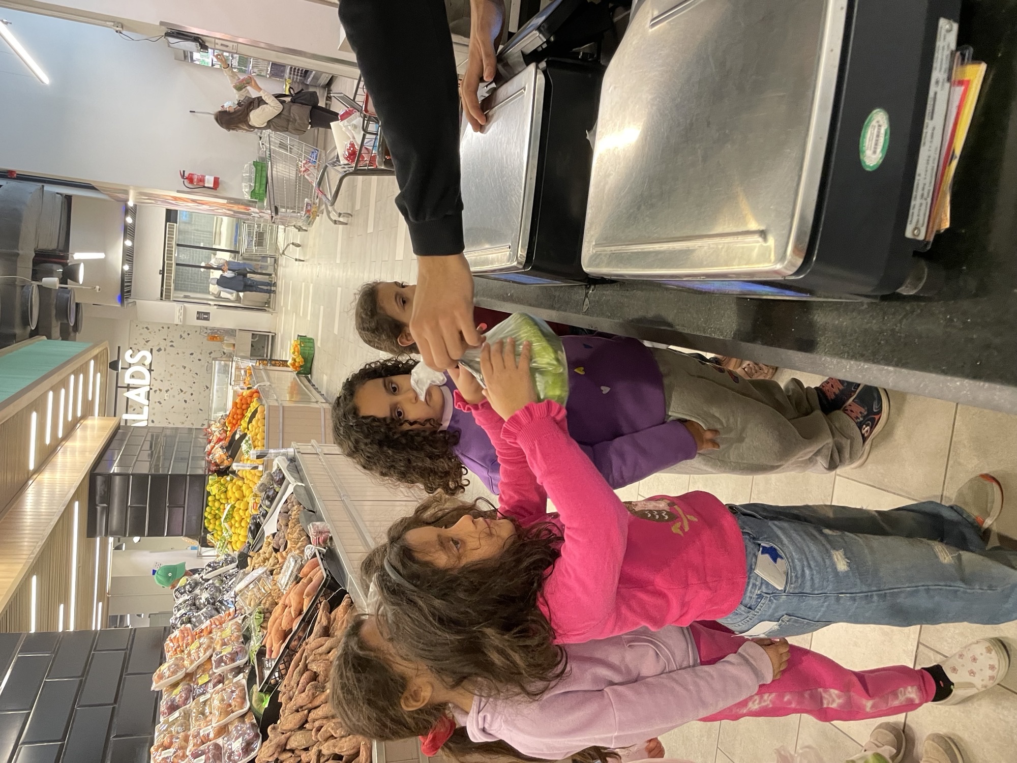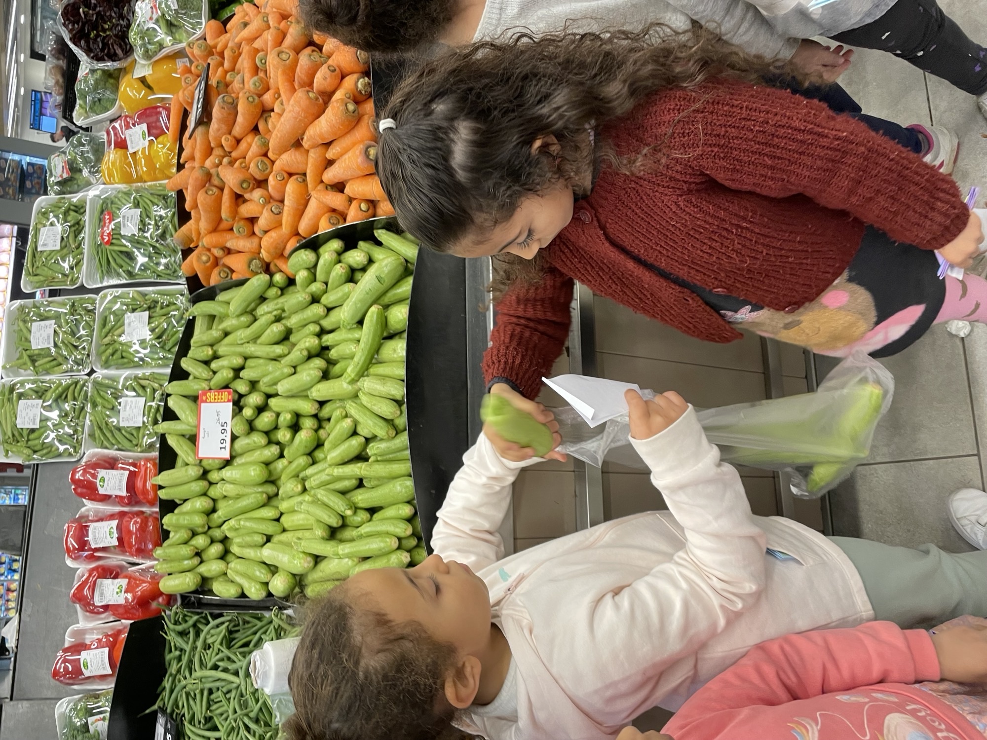 وبسعادة بالغة ذهبت المجموعة بأكملها بصحبة معلمات الحضانة للتسوق بالسوبرماركت. بمجرد الوصول إلى هناك، بحثت الصغيرات عن المكونات، ووزن الخضروات، ودفعن الحساب من نقودهن.