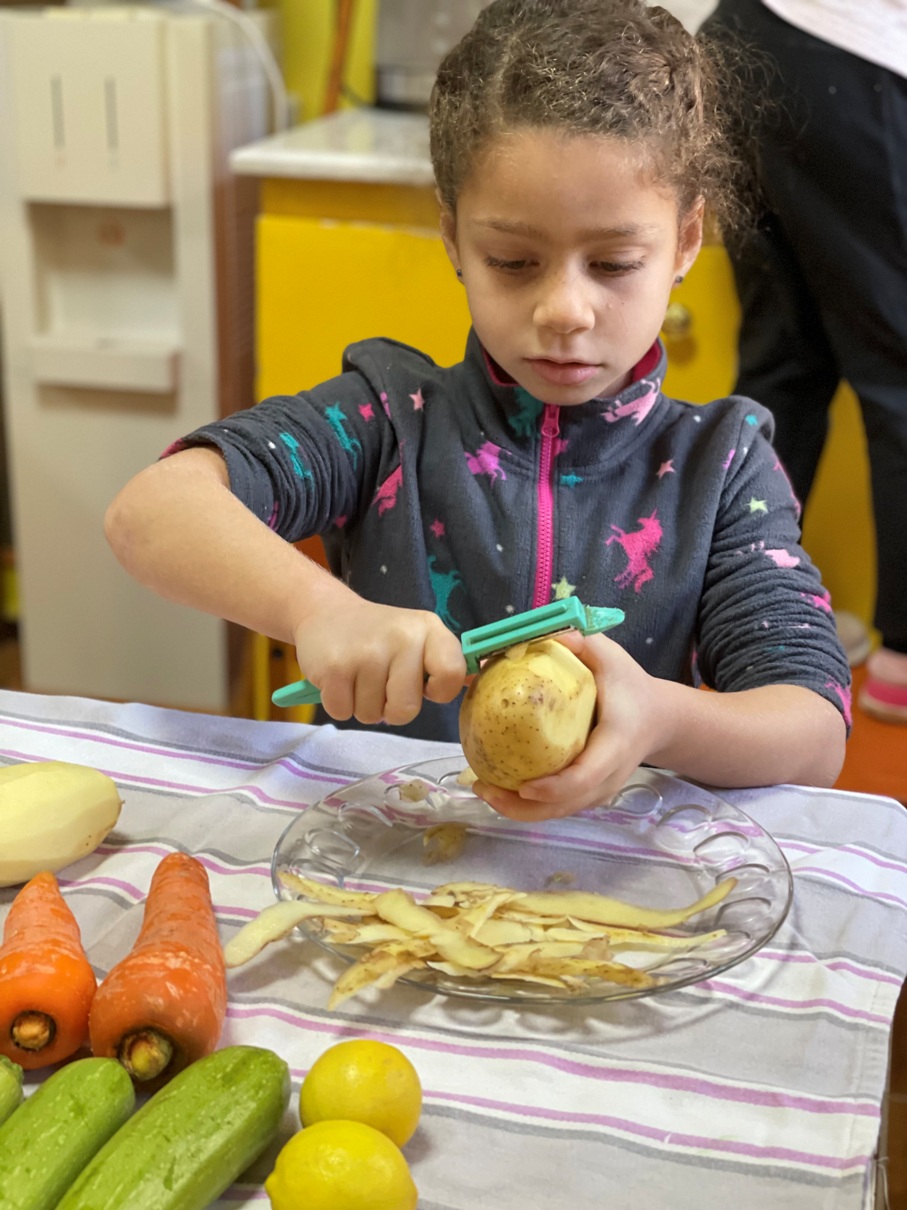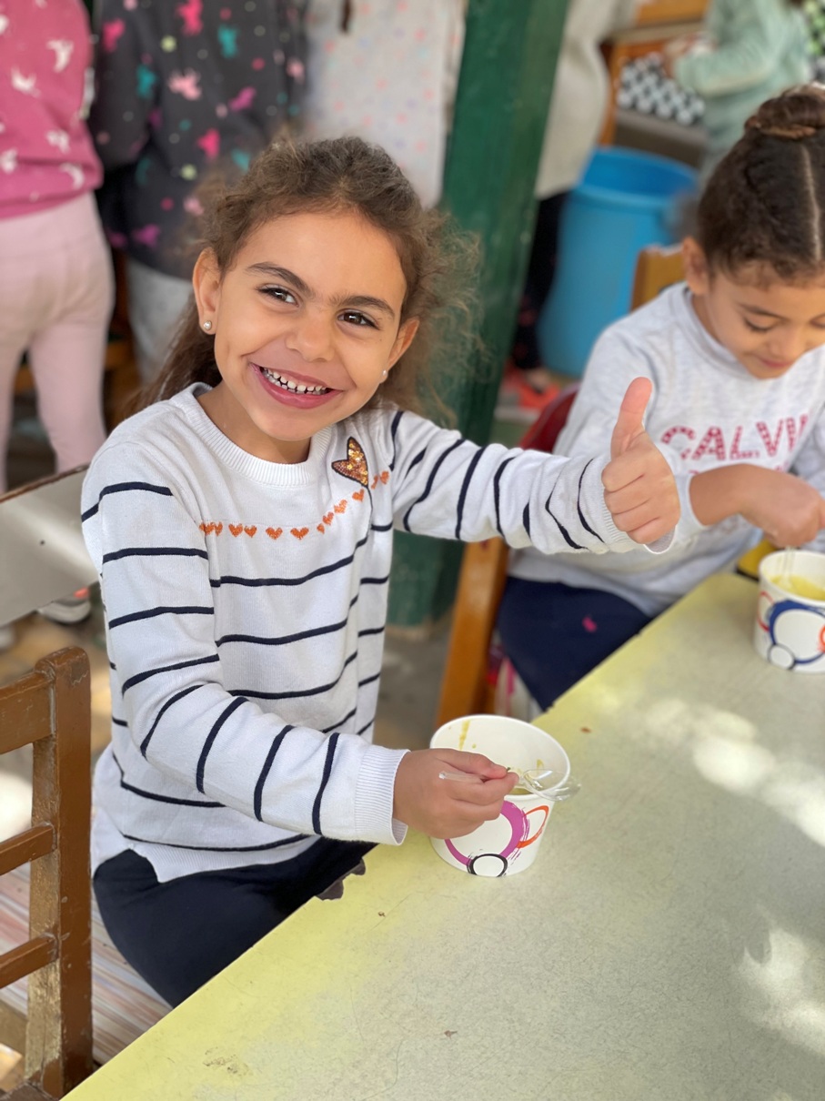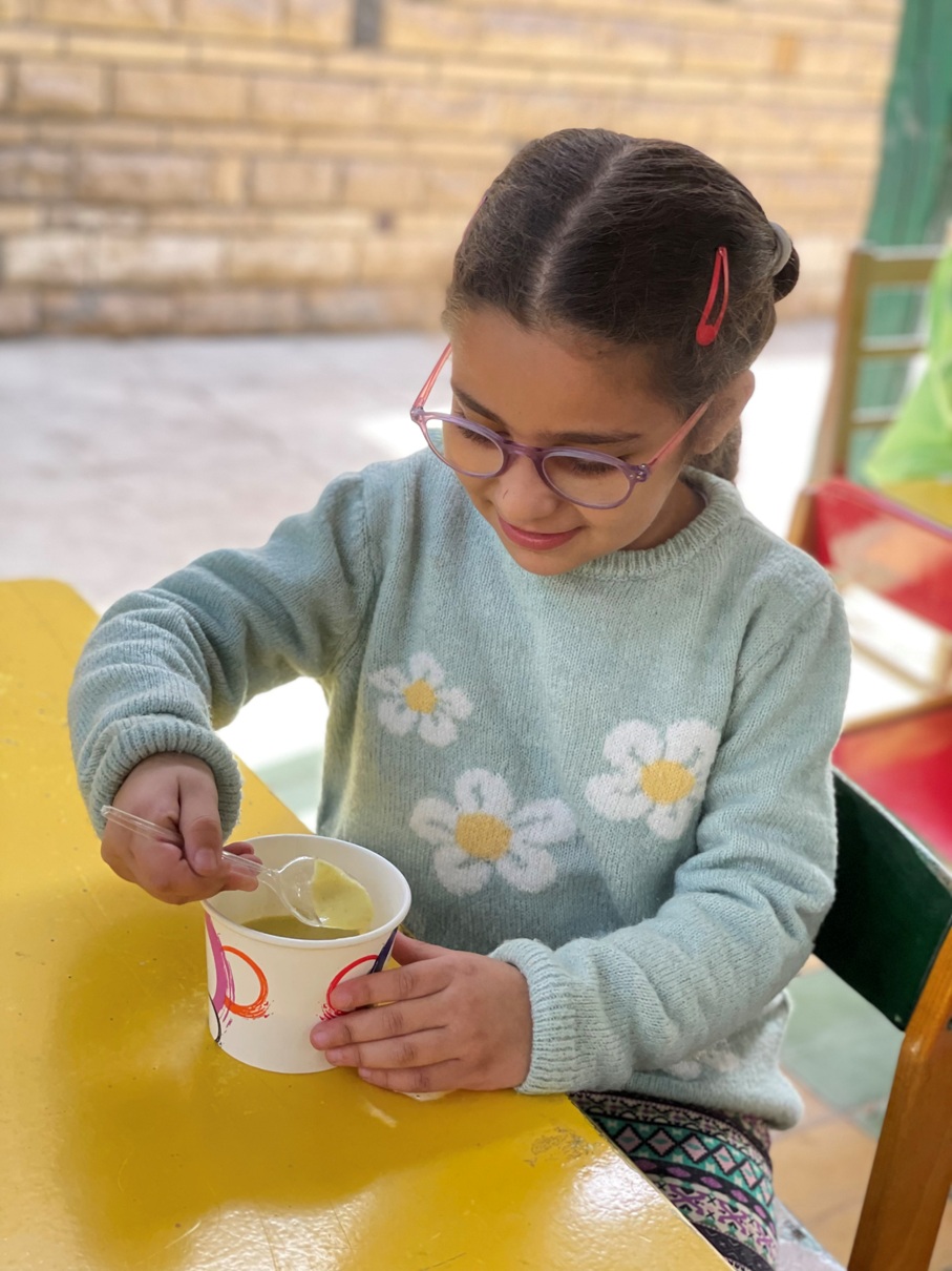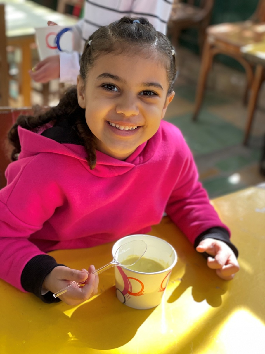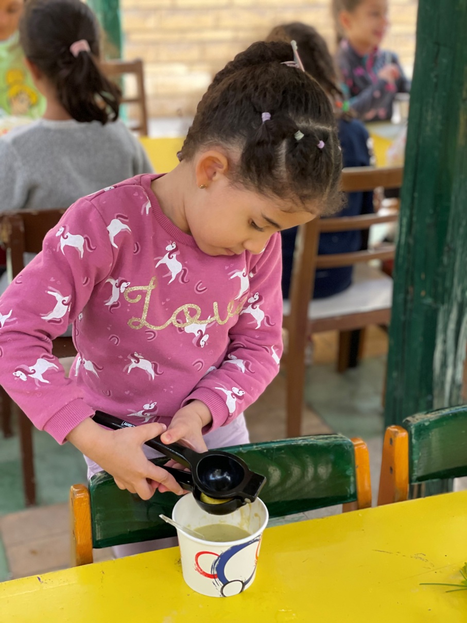 وفي النهاية تناولت الصغيرات الحساء معًا وسمح لهن بإضافة القليل من الليمون بمفردهن. حتى اللاتي سبق لهن رفض حساء الخضروات، أكلن بحماس حساءهن الذي طبخناه بأنفسهن.