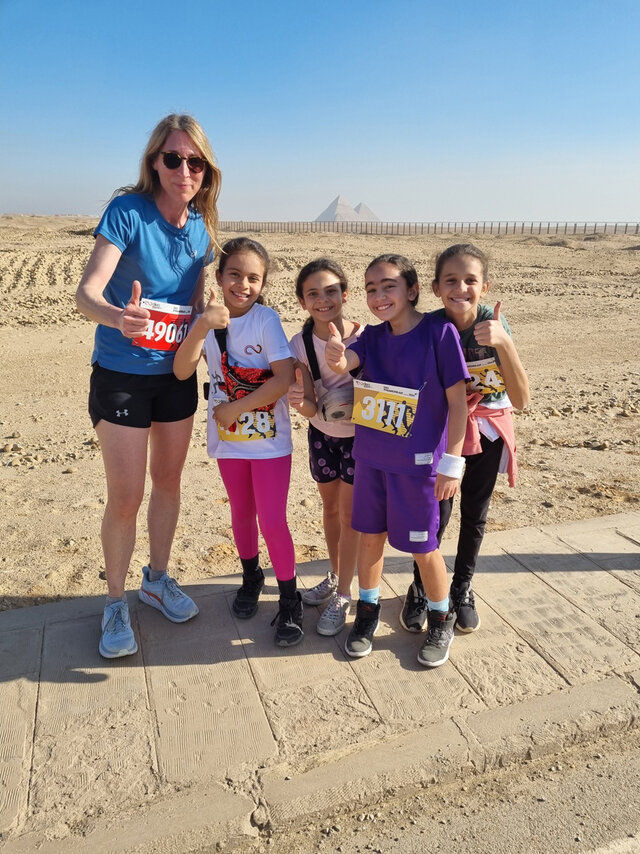 في الساعة الثامنة صباحًا انطلق فريق المدرسة بحماس كبير جنبًا إلى جنب مع 1500متسابق ومتسابقة آخرين من مختلف الأعمارفي سباق الجري الذي بلغ طوله 6 كيلومترات. في طقس رائع وخلفية مهيبة من المقابر الملكية الأثرية، ركض كل متسابق حسب قدرته. وأخيرًا وصل الجميع إلى خط النهاية مرهقين، ولكن بابتسامة فخر على وجوههم.