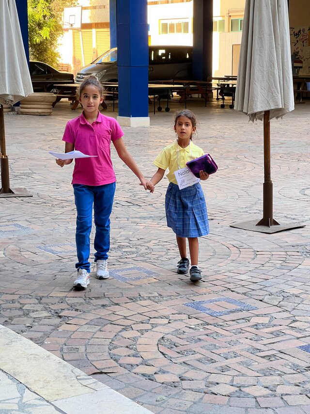 بداية مشوّقة لتلميذات الصف الأول الجديدات: فقد قمن مع زميلاتهن المرافقات من الصف الرابع بجولة استكشافية في مبنى المدرسة.