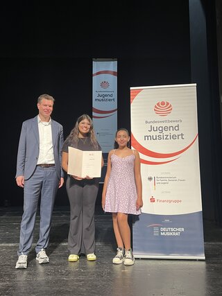 عادت طالبتان من طالبات المدرسة بعد المشاركة بنجاح في نهائيات المسابقة الاتحادية الشباب يعزف ويغني التي أقيمت في مدينة لوبيك بألمانيا.