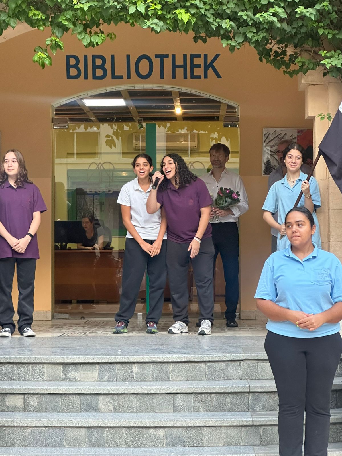 Wir bedanken uns herzlich bei Anita Haitham und Nicole Fady (beide Klasse 10a) für ihr Engagement und ihren Einsatz im vergangenen Schuljahr. Sie haben ihr Amt nun an Klara Kamal und Sarah Elaktash (beide Klasse 10b) übergeben.